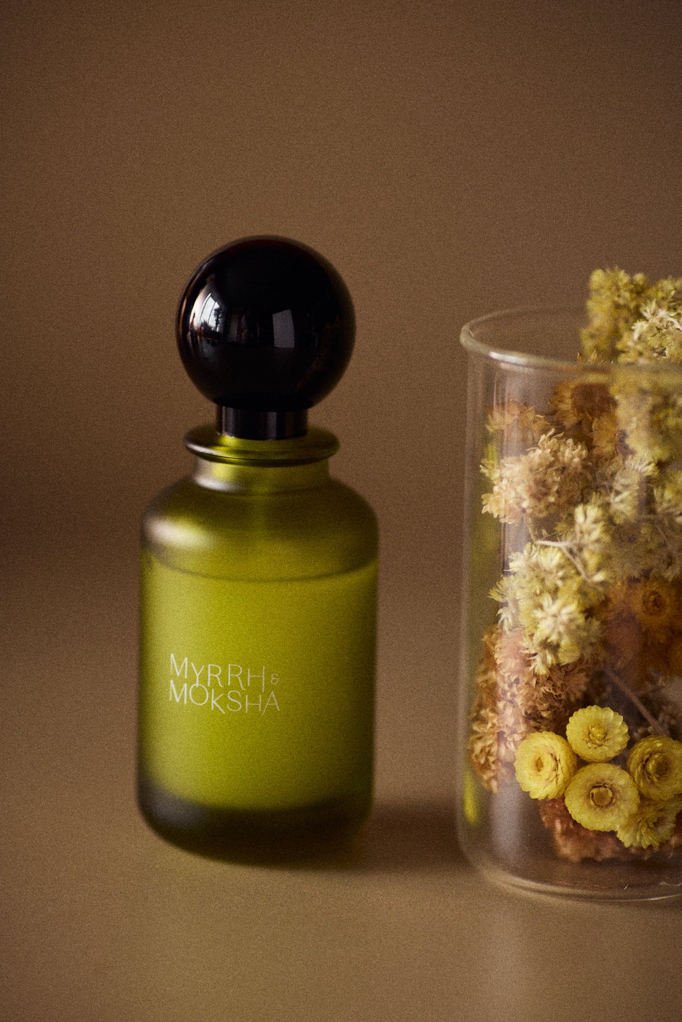 materials: lemon, mimosa, coriander, fir needle, ylang ylang, ginger, patchouli, red thyme, myrrh, vanilla, alcohol denat.